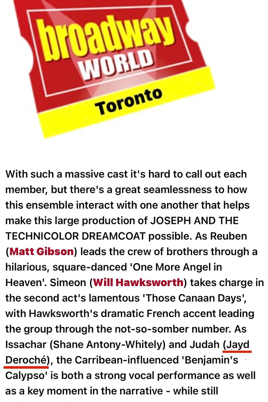This rising star had his musical theatre debut in the London Palladium Production of Joseph and the Amazing Technicolour Dreamcoat, with the Role of Judah, and he had his own Solo.